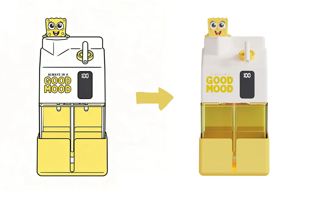 This cute doll milk carton hand sanitizer was developed as an OEM small appliance project, with services including product design, structural engineering, mold making, and mass production.