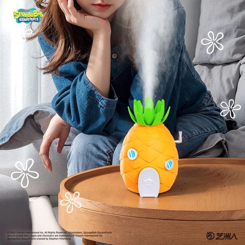 Pineapple House Humidifier is a creative desktop humidifier that combines a fun licensed IP-inspired design with practical everyday functionality. Featuring a playful pineapple house appearance, this product is more than just a humidifier—it also works as a decorative piece for desks, bedrooms, offices, and gift collections.