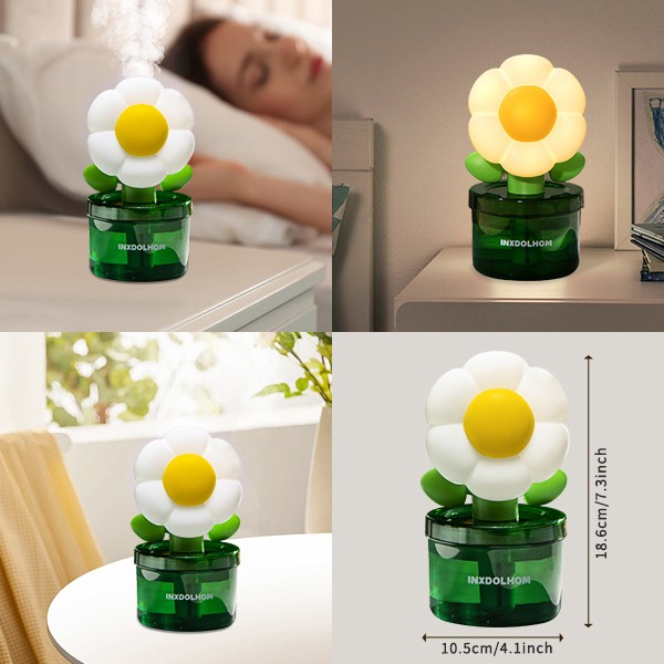It has humidifier and ambient lighting functions. Both are operated with a single button.